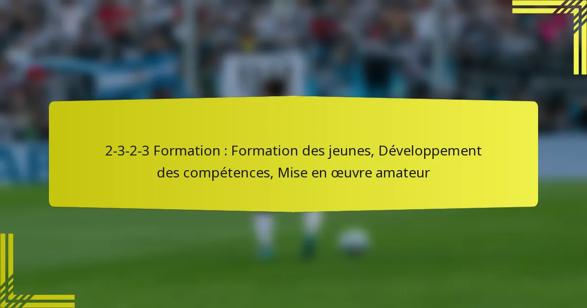 La formation 2-3-2-3 est une configuration tactique efficace pour le football des jeunes, équilibrant la stabilité défensive avec des options offensives. En favorisant les compétences individuelles et collectives, cette formation encourage les joueurs à développer leur polyvalence et leurs capacités techniques tout en favorisant le travail d’équipe et la communication. Les entraîneurs amateurs peuvent mettre en œuvre cette formation avec succès en soulignant des rôles clairs et en introduisant progressivement des concepts tactiques à leurs joueurs.