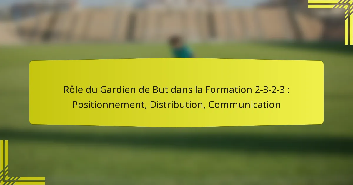 Le gardien de but dans la formation 2-3-2-3 joue un rôle crucial tant en défense qu’en attaque, agissant comme la dernière ligne de défense tout en facilitant le jeu depuis l’arrière. Son positionnement, ses techniques de distribution et ses compétences en communication sont essentiels pour maintenir la dynamique de l’équipe et exécuter efficacement les stratégies tactiques.
